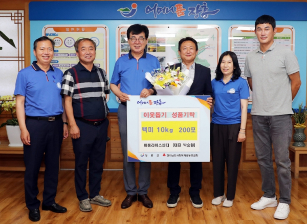 김성 장흥군수는 “지역 인구증가를 위해 기업유치를 통한 일자리 창출에 노력하겠다”며, “지역경제 활성화에 기여하고 있는 미풍라이스센터의 나눔 동참에 깊이 감사드리며 성품은 소외된 이웃을 위해 소중하게 사용하겠다”고 전했다.