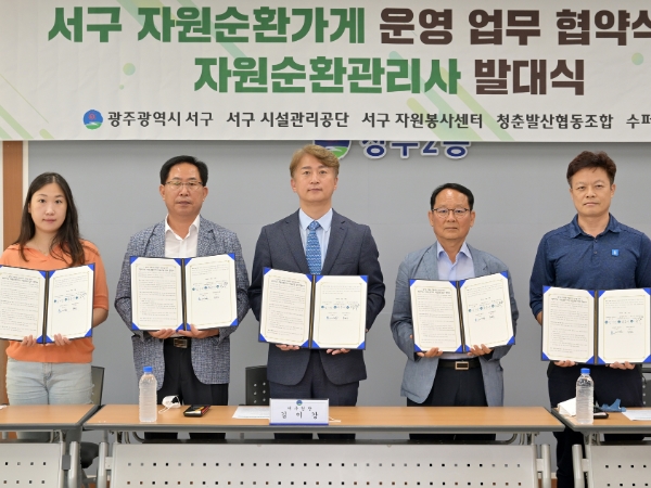 한편, 서구는 자원순환가게 개소에 앞서 서구시설관리공단, 서구자원봉사센터, 수퍼빈(주), 청춘발산협동조합과 재활용품의 수거 및 보상, 처리에 관한 업무 협약을 체결하였다.