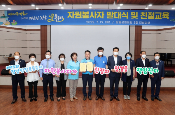 [남도저널 양용숙] 장흥군은 19일 군민회관에서 ‘제15회 정남진 장흥 물축제’ 자원봉사자 발대식을 개최하고 성공적인 축제 개최를 다짐했다.