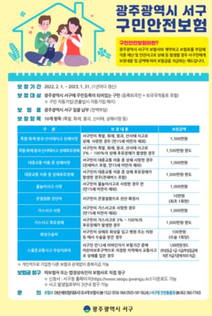 [남도저널 김용범 기자] 광주광역시 서구가 각종 사고와 재난으로 피해를 입은 구민에게 최소한의 생활안정자금을 지원해 일상생활로의 복귀에 도움을 주고자 지난 2월부터 ‘구민안전보험’을 시행 중이다.