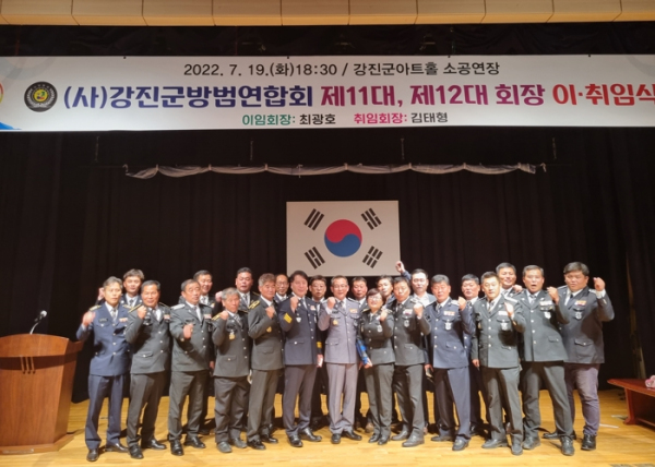 이날 최광호 11대 회장이 이임하고, 12대 김태형 회장이 취임했다. 특히, 강진경찰서장은 자율방범대 활성화 및 민생 치안활동 유공자인 자율방범연합회 부회장 등 6명에게 감사장을 수여했다.