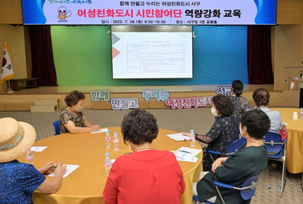 [남도저널 김용범 기자] 광주 서구가 7월 26일 서구청 들불홀에서 여성친화도시 시민참여단 역량강화 교육을 실시했다.