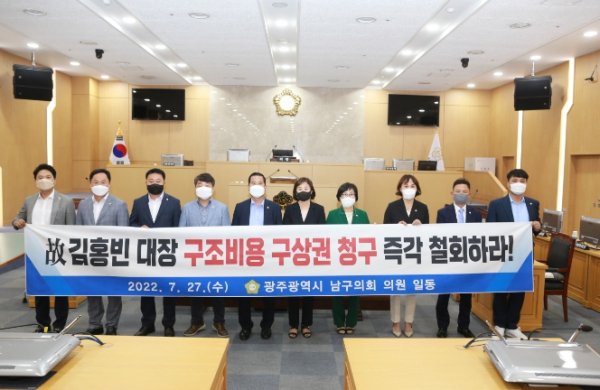 [남도저널 김용범 기자] 광주 남구의회(의장 황경아)는 7월 27일 본회의장에서 외교부의 故 김홍빈 대장 구조비용 구상권 청구에 대한 철회를 촉구하는 성명서를 발표했다.