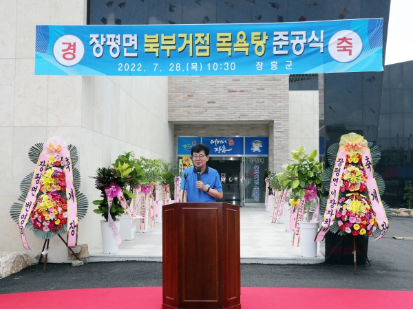 김성 장흥군수는“장평면 북부거점 목욕탕이 주민들께 활력을 불어 넣고, 삶의 피로를 풀어주는 좋은 휴식 공간이 되기를 바란다”고 말했다.