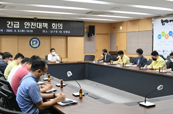 김병내 구청장은 이날 오전 10시 간부 공무원을 소집한 뒤 구청 7층 상황실에서 ‘재해대책 긴급회의’를 열었다.