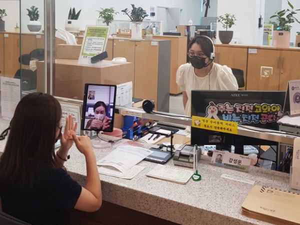 먼저 종합민원실을 방문한 장애인 민원인이 수어 통역 서비스 지원을 요청하면 광주시 장애인종합복지관 통역사와 민원인간 실시간 영상 수어 통역이 이뤄지며, 수어 통역이 완료되면 통역사가 담당 공무원에게 민원 내용을 즉각 전달하는 구조이다.