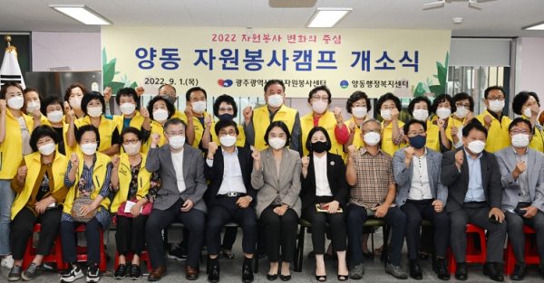 [남도저널 김용범 기자] (사)광주광역시서구자원봉사센터가 지난 1일 양동 다목적센터에서 캠프지기, 자원봉사센터 관계자 등 70여명이 참석한 가운데 양동 자원봉사캠프 개소식을 개최했다.