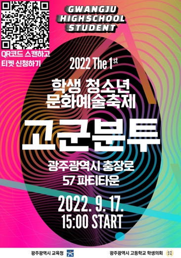[남도저널 김용범 기자] 광주시교육청 제11기 고등학교 학생의회가 오는 17일 고등학생들이 기획하고 운영하는 학생 청소년 문화예술축제 ‘고.군.분.투.’를 진행한다.