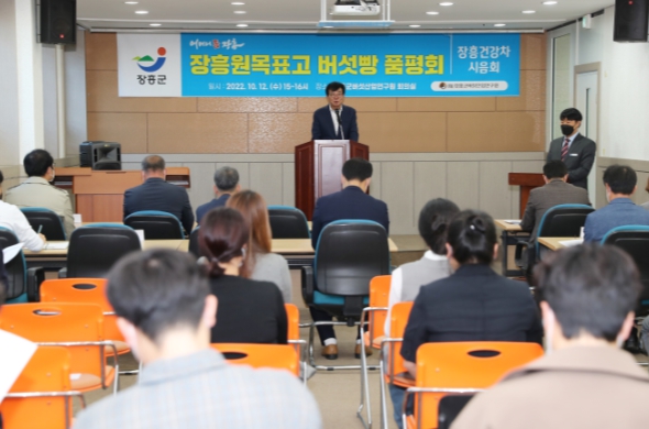 품평회는 지난 12일 장흥군버섯산업연구원 세미나실에서 김성 장흥군수, 관내 제과점 및 베이커리 카페 관계자 등 50명이 참석하여 다양한 시각으로 개발 중인 원목표고 버섯빵의 맛과 품질을 점검하는 시간으로 진행됐다.