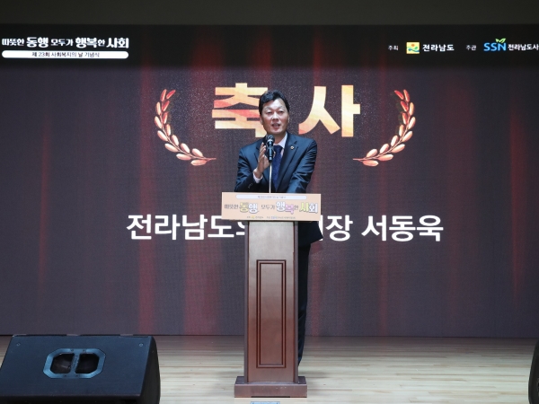 [남도저널 박기철 기자] 서동욱 전라남도의회 의장은 14일 오후 3시 전남여성가족재단에서 열린 ‘제23회 사회복지의 날 기념식’에 참석해 “복지사각지대 없는 복지정책을 펼치겠다”고 강조했다.