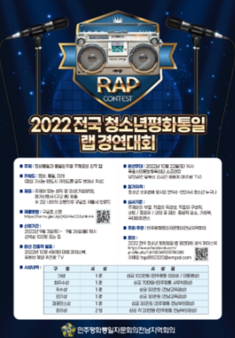 평화, 통일, 미래, 우리가 만드는 새로운 한반도 등을 주제로 치러지는 이번 경연은 전국 14~25세 젊은 층을 대상으로 직접 창작한 랩 동영상을 사전에 접수했다. 사전 접수한 64개 팀에 대한 예선심사를 거쳐 전국 14개 팀이 본선에서 치열한 경합을 벌인다.