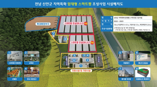 농식품부는 시설원예단지의 규모화를 통해 공동이용시설 구축을 목적으로 지난 5월 공모를 통해 서류심사, 현장조사 및 전문가 평가 등을 거쳐 신안군을 선정했다.