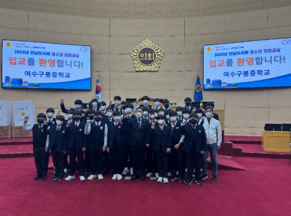 이날 의회교실은 여수구봉중학교 학생 33명이 ‘1일 도의원’으로 참여했다.