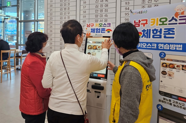 남구는 체험존에 도우미를 배치해 키오스크 체험을 희망하는 주민들을 대상으로 사용 방법을 안내하고 있다.