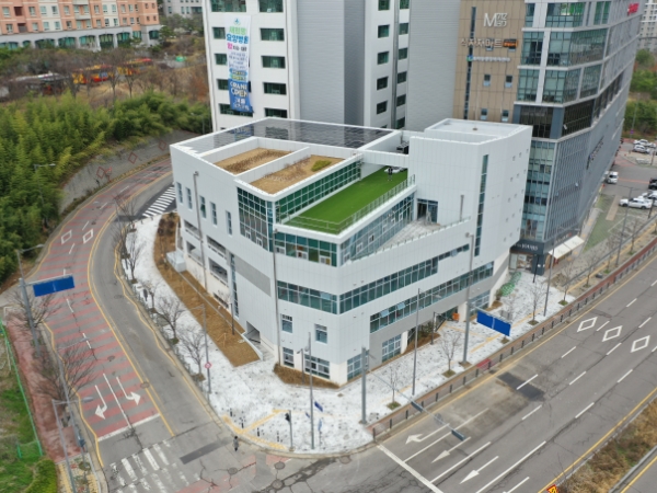 건물 곳곳에 커다란 유리창을 배치해 자연채광을 극대화하고, 옥상에 태양광 발전시설을 구축하는 등 에너지 소비를 최소화하는 자연 친화형 건물로 건립된 것이다.