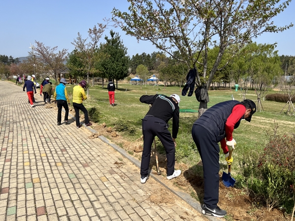 우선 남구와 남구체육회, 파크골프 회원 100여명은 최근 파크골프장과 산책로 주변에 나무 200그루를 식재했다.
