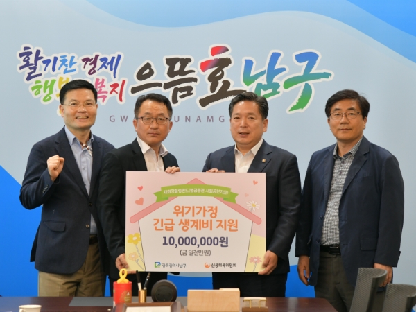 [남도저널 이운현] 신용회복위원회 광주전남제주 본부는 남구 관내 조선가정 및 소년소녀가정 등 위기가정 지원을 위해 남구청에 긴급 생계비 1,000만원을 후원했다.