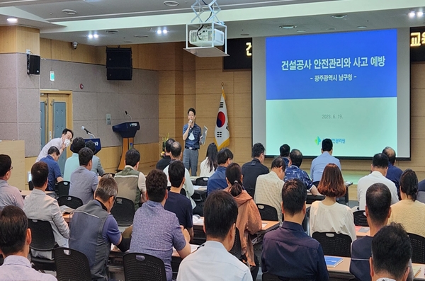 이날 교육에 관내 건설공사 현장 관계자와 구청 담당 공무원, 국토안전관리원 호남지사 등 100명 가량이 참석했으며, 교육은 약 90분간 진행됐다.
