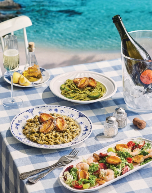 완도 전복을 활용한 신메뉴는 크림 리조또에 버터로 구운 완도 전복을 올리고 전복 소스를 더해 감칠맛을 살린 리조또와 부드럽고 쫄깃한 식감의 완도 전복과 문어, 새우 등 다양한 해산물과 청포도, 레몬 비네거 드레싱이 어우러진 샐러드이다.