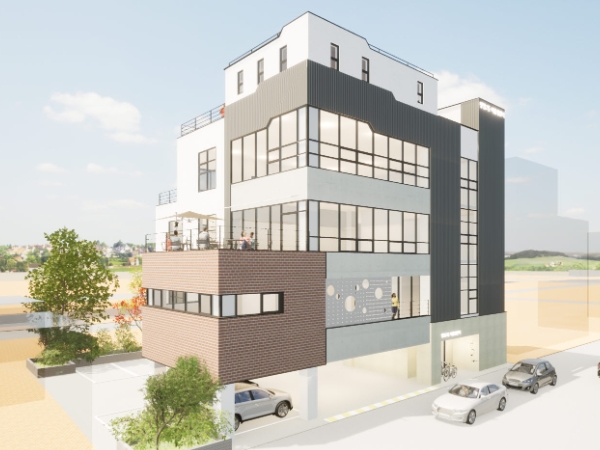 건물의 전체적인 외관은 곳곳에 통유리를 사용해 시원한 개방감을 자랑하며, 야외 테라스와 옥상, 자전거 보관대 등 자투리 공간도 유용하게 활용하는 방식으로 설계됐다.