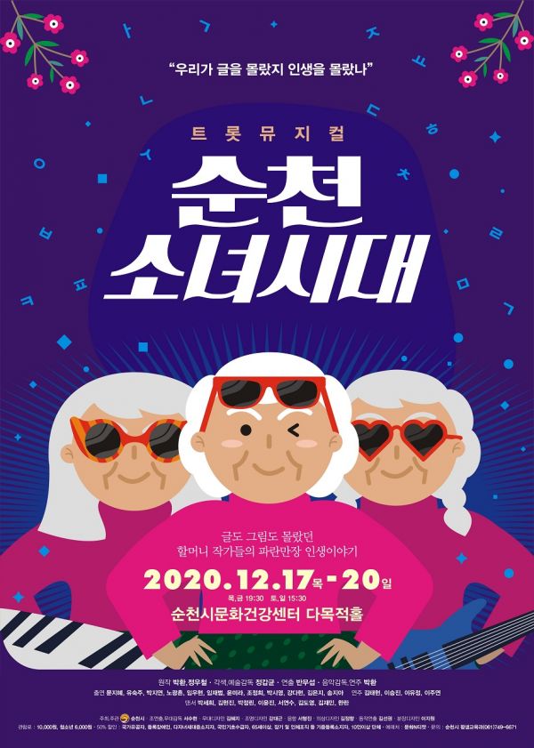 [남도저널] 김용범 기자 = 순천시는 글을 배우지 못한 소녀들이 할머니 작가가 되기까지 파란만장 인생이야기를 트롯으로 구성한 창작뮤지컬 ‘순천소녀시대’공연을 준비했다.