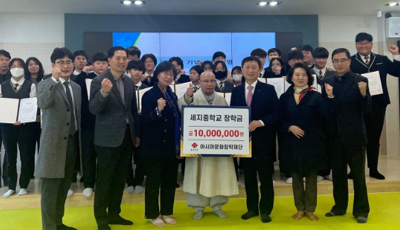 [남도저널 김용범 기자] (재)아시아문화장학재단이 최근 나주시 세지중학교 재학생 20명에게 50만원씩 총 1000만원의 장학금을 전달했다.