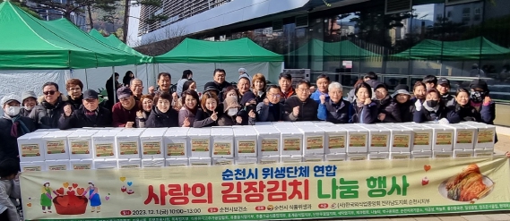 위생단체 임원진과 시 보건소 직원 100여 명이 모여 외서면 절임 배추에 순천농협 남도김치 양념을 직접 버무렸으며, 시는 김치 1,000kg을 지역아동센터 등 취약계층 총 200세대에 전달했다.