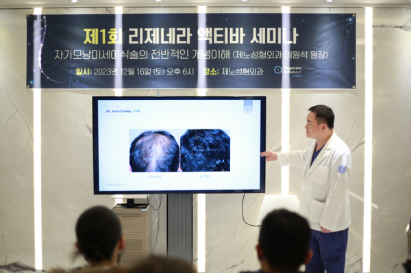 [남도저널 김용범 기자] 최근 탈모 치료 분야에서 혁신적인 접근법을 제시하고 있는 리제네라 액티바가 지난 12월 16일 서울 청담동의 제노 성형외과 & 줄기세포 연구센터에서 특별 세미나를 개최했다.
