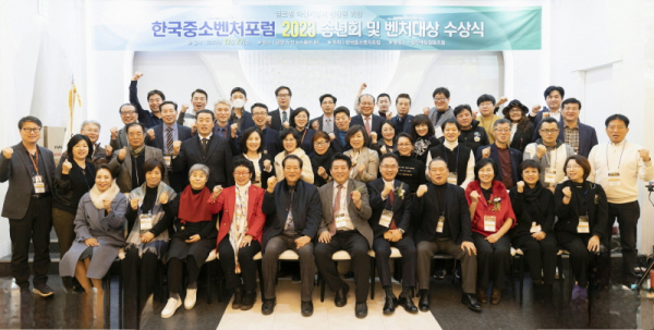 [남도저널 김용범 기자] 한국중소벤처포럼(SMF)이 27일 광명크로앙스 6층 두선b스퀘어에서 '2023 송년회 및 벤처 대상 시상식'을 개최했다.