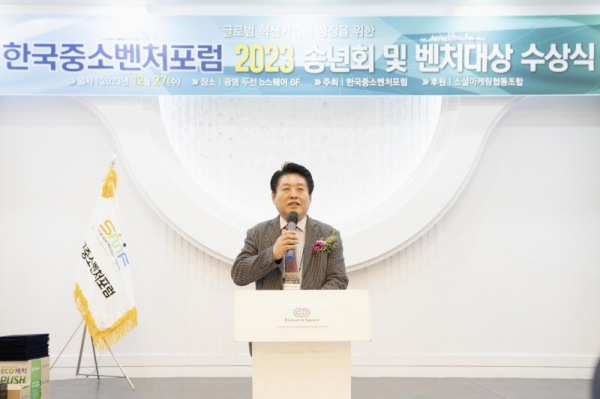 임새벽 사무총장(원뉴스 대표)은 개회사에서 "오늘 이 자리는 지난 1년간 회원 여러분들의 눈부신 활약을 시상하고, 서로의 경험을 공유하는 귀중한 시간"이라며 "다양한 도전과 기회가 공존하는 이 시대에, 우리 한국중소벤처포럼은 더욱 긴밀한 협력과 지속적인 혁신으로 이를 극복하길 바란다"라고 말했다.