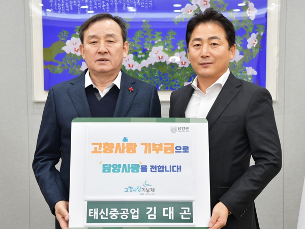 [남도저널 김종민 기자] 담양군이 태신중공업 김대곤 대표가 고향사랑기부금을 기탁하며 담양군 1호 기부자가 됐다고 5일 밝혔다.