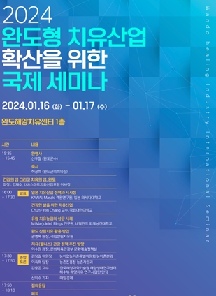 [남도저널 양용숙 기자] 완도군은 1월 16일부터 17일까지 완도 해양치유센터에서 '완도형 치유산업 확산을 위한 국제 세미나'를 개최한다.
