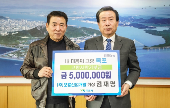 ㈜오룡산업개발 김재명 회장, 마음의 고향 목포에 고향사랑기부금 500만원 기탁