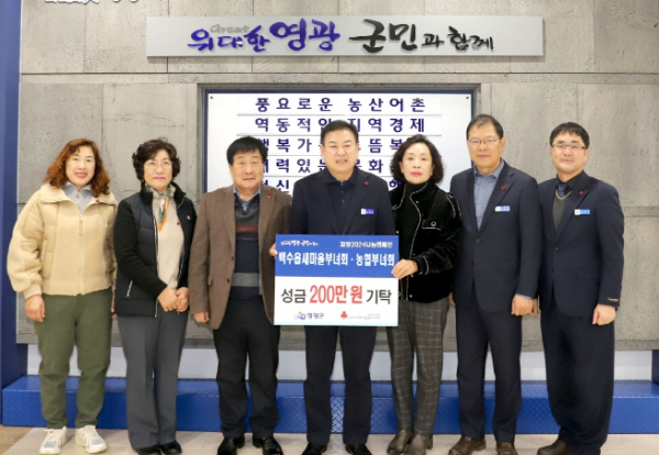 강종만 군수는 “항상 우리 지역을 위해 봉사하고 후원해주시는 백수읍 새마을부녀회와 백수농협부녀회에 감사하고, 보내주신 성금은 관내 도움이 필요한 이웃에게 전달하겠다.”라고 말했다.