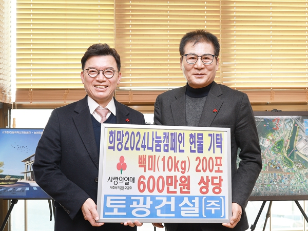 나안균 대표는 “작은 정성이지만 이번 기부가 어려운 이웃들에 대한 작은 관심이 큰 희망으로 전달되길 바란다”며, “앞으로도 토광건설의 대표로서 지역발전을 위해 변함없이 지원하겠다”고 전했다.