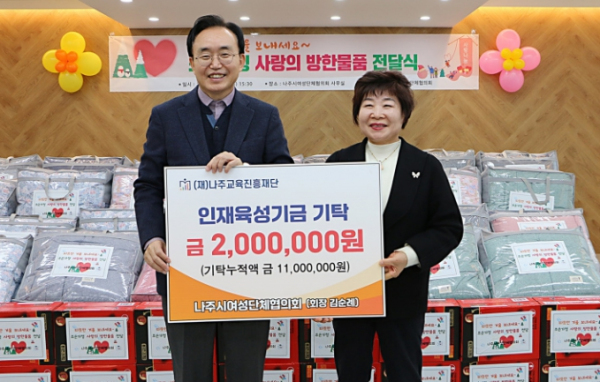 나주시는 최근 여성단체협의회에서 530만원 상당 방한용품과 라면, 인재육성기금 200만원을 각각 기탁했다고 10일 밝혔다.
