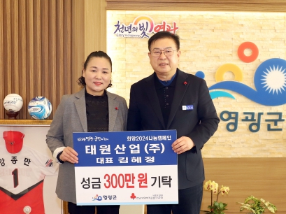 [남도저널 김종훈 기자] 지난 10일 태원산업에서는 영광군에 희망2024나눔캠페인 성금 300만 원을 기탁했다.