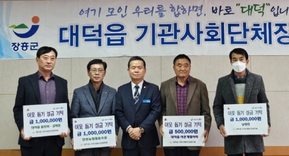 [남도저널 양용숙 기자] 장흥군 대덕읍지역사회보장협의체에서 추진하는 기부릴레이 운동에 지난 11일 대덕읍 기관사회단체와 대표가 따뜻한 마음을 전달했다.