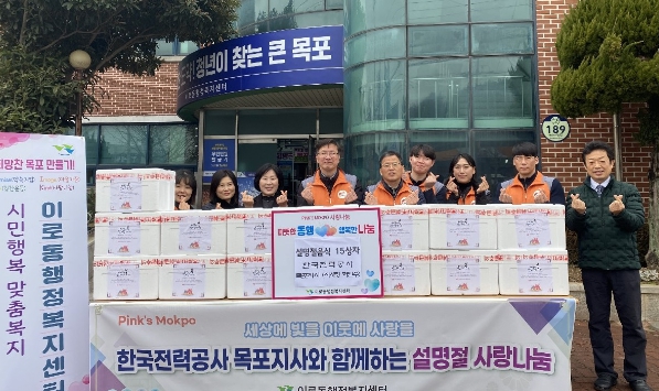 [남도저널 박기철 기자] 한국전력공사 목포지사는 지난 1일 설 명절을 맞아 소외된 취약계층에 전해달라며 “사랑의 설 명절 선물 꾸러미 15상자(150만원 상당)”를 이로동 행정복지센터에 기탁했다.