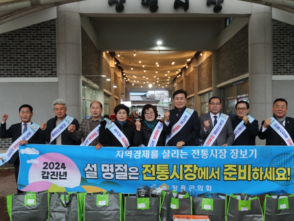 [남도저널 양용숙 기자] 장흥군의회 전체의원은 2월 6일, 지역 전통시장인 장평시장을 찾아 설 맞이 명절 장보기 행사를 진행했다.