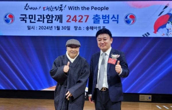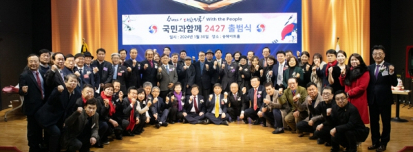 [남도저널 김용범 기자] 지난 30일 오후 2시 서울의 송해아트홀에서 관계자와 내.외빈등 200여명이 참석한 가운데 ’국민과함께2427‘(총재 박찬종, 회장 지용운)이 출범식을 가졌다.