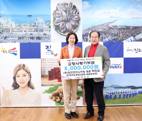 [남도저널 김승귀 기자] 한국여성경제인협회 특별부회장직을 맡고 있는 (주)한진엔지니어링 허인순 대표가 진도군에 고향사랑기부금 500만원을 기탁했다.