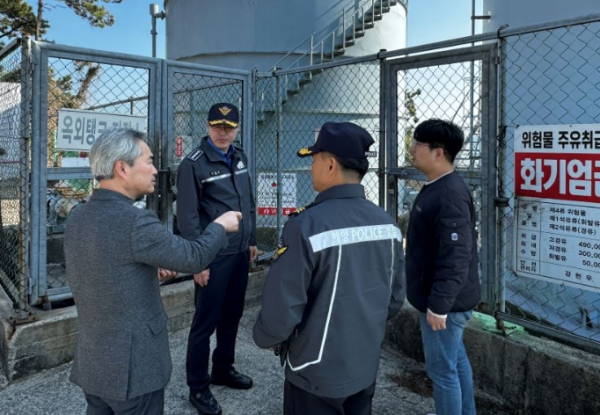 [남도저널 양용숙 기자] 완도해양경찰서는 13일 관내 대형 기름저장시설인 완도금일수협 신지급유소를 방문, 시설물 운영 및 관리실태, 방제대응체계 등에 대해 점검했다고 밝혔다.