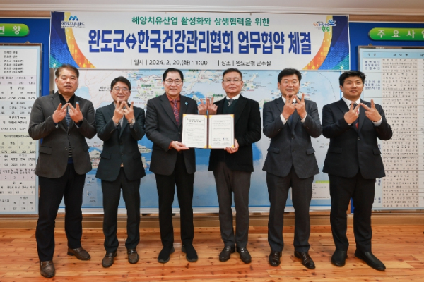 [남도저널 양용숙 기자] 완도군은 2월 20일 한국건강관리협회와 해양치유산업 활성화를 위한 업무 협약을 체결했다.