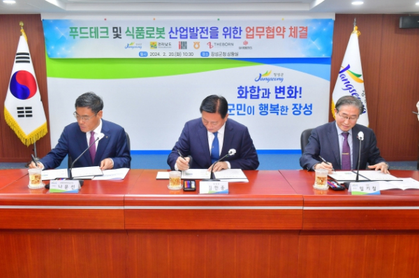 이번 협약은 농림축산식품부 ‘푸드테크연구지원센터 공모사업’ 신청을 목적으로 추진됐다. 푸드테크연구지원센터 공모사업은 식품로봇, 식물성 대체식품, 푸드업사이클링 3개 부문으로 나뉜다. 선정된 지역에는 지원센터 구축에 개소당 3년간 105억 원의 사업비가 투입된다. 장성군은 식품 생산, 유통 등의 과정에 로봇을 도입해 생산성과 효율성을 높이는 ‘식품로봇’ 분야에 도전장을 내밀었다.