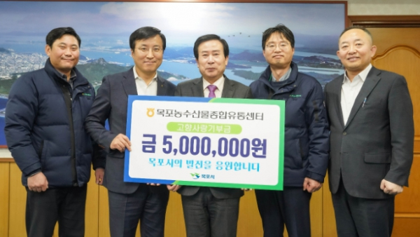 [남도저널 박기철 기자] 목포시가 목포농수산물종합유통센터 임직원들이 고향사랑기부금 총 500만원을 기탁하며 고향사랑기부제에 동참했다고 밝혔다.
