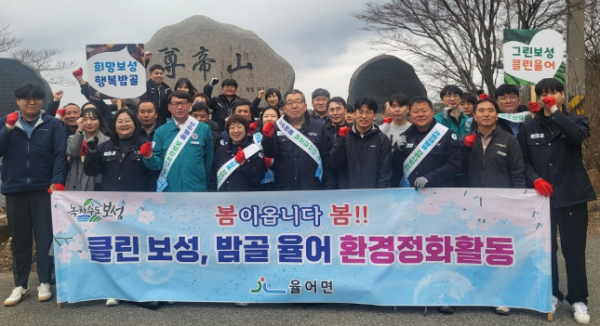 율어면은 지난 11일 율어면 행정복지센터, 보성군 안전건설과, 농업기술센터 직원 등 40여 명이 참여해 봄맞이 환경정화 활동을 펼쳤다.
