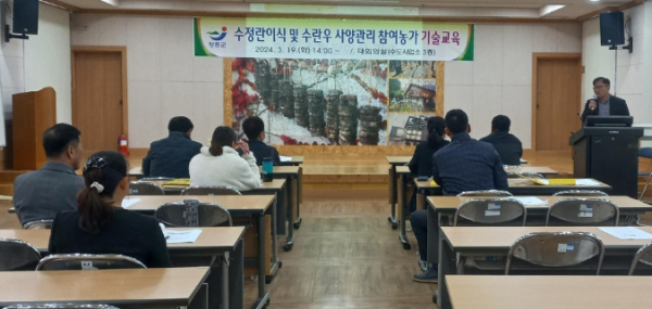 교육은 수란우의 우방분리, 양질의 조사료 급이, 1일 적정 급이량, 암소 적정 체중 유지 등 농가가 준수 해야 할 사양관리에 중점을 두었다.