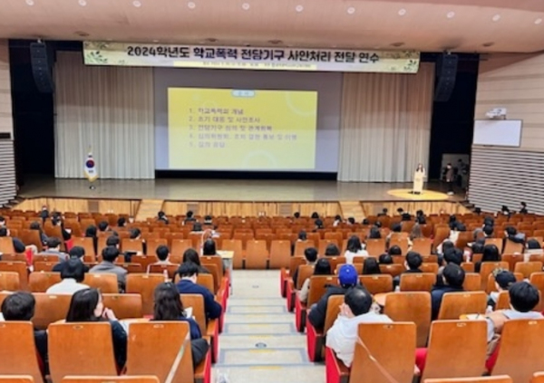 [남도저널 이운현 기자] 광주서부교육지원청이 지난 20일 서부 관내 교감 및 학생(생활)부장, 생활교육 담당 교사들로 구성된 초·중·고·특수학교 전담기구 위원 대상으로 '2024 학교폭력전담기구 연수'를 실시했다.