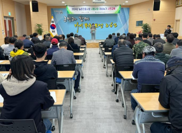 원활한 사업 추진을 위해 지난 21일 농업기술센터 대강당에서 읍면 농민상담소장을 포함한 2024년 농촌진흥 시범사업 대상자 73명을 대상으로 ‘농촌진흥 시범사업 사전교육’을 실시했다.